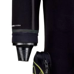 – Du néoprène compressé de 4 mm est utilisé sur l’ensemble du vêtement. Il offre une grande chaleur, conserve son épaisseur même lors de plongées profondes et limite la flottabilité.