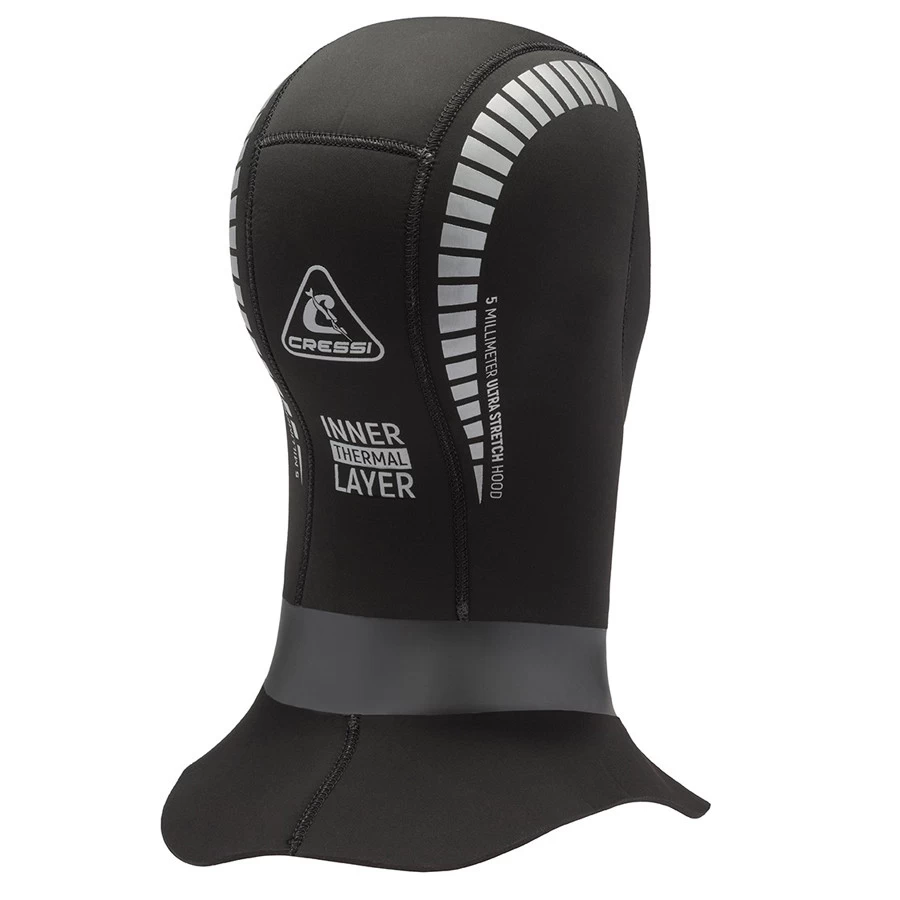 Cagoule de 5 mm, avec un col ras du cou surdimensionné qui permet une meilleure étanchéité pour ceux qui veulent l’utiliser en l’insérant sous le col de la combinaison.