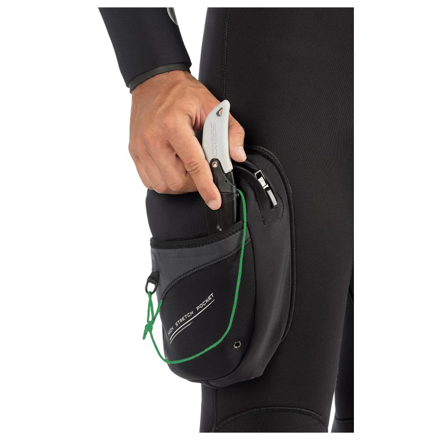 Une poche latérale à 2 compartiments (1 fermeture à glissière et 1 fermeture velcro) permet de ranger divers accessoires indispensables à la plongée sous marine bouteille.