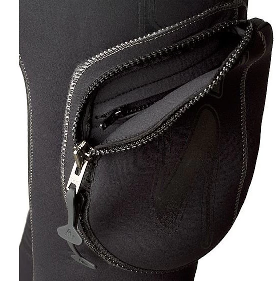 – FERMETURE ÉCLAIR DRY – étanche aux gaz avec la garde de refroidissement qui se croise horizontalement sur les épaules et rend la combinaison sèche et chaude. Notez le couvercle à glissière qui protège le Dryzipper.