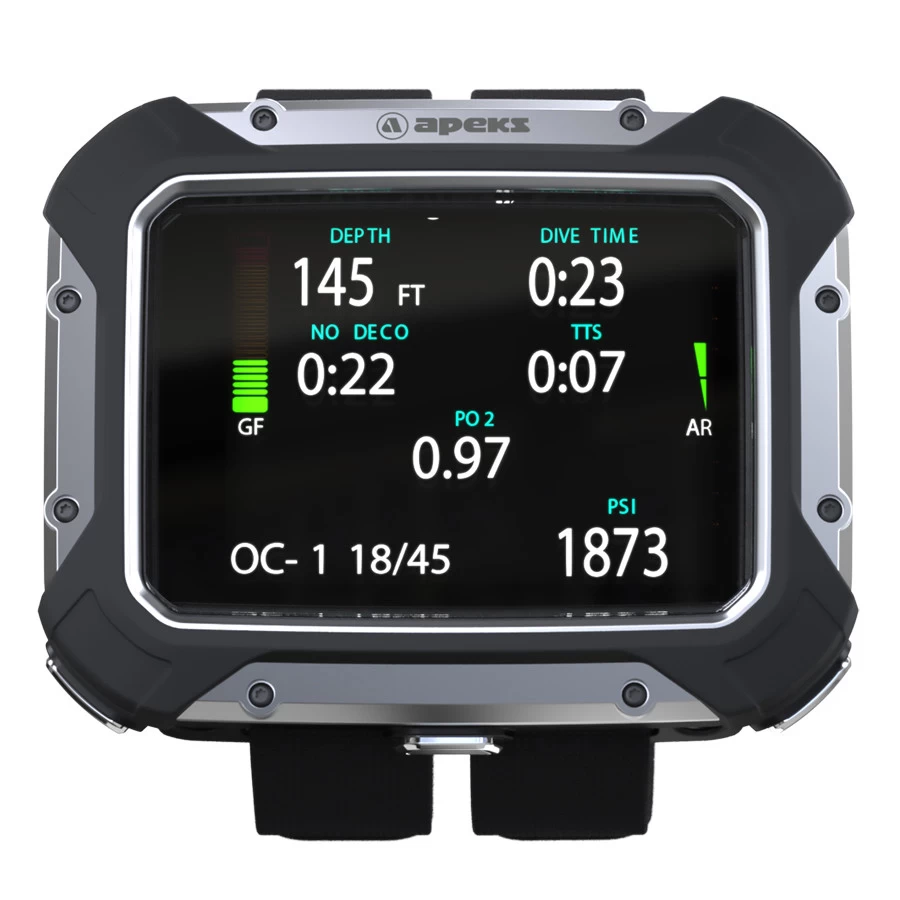Robuste comme seul Apeks sait le faire, il est doté de nombreuses fonctionnalités de pointe, notamment le mode sidemount et CCR, la recharge par induction ou par câble et la gestion de jusqu’à 6 gaz. Le DSX est prêt à vous emmener dans votre prochaine aventure.